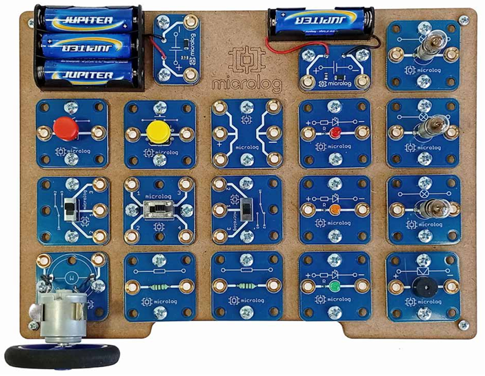 Los minikits se pueden interconectar mediante latiguillos tipo banana para obtener los circuitos deseados.